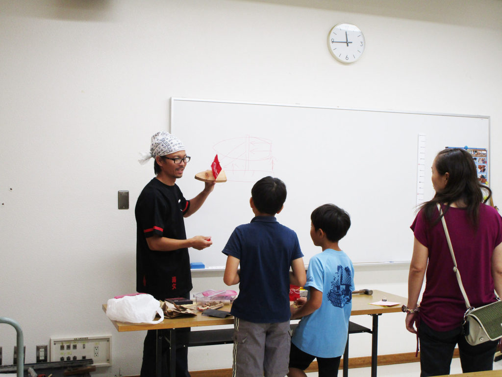現役の木造船大工指導のもと、簡単な船の模型を造っていただきます。船に適した木の選び方、船を造る道具や技術などを学びながら、船大工の視点を通して、船や海に関する文化の一端に触れることができます。完成した模型を風の力で走らせるレースもおこなう予定です。